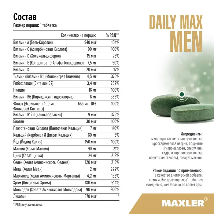 Maxler Ежедневные витамины для мужчин, 120 табл