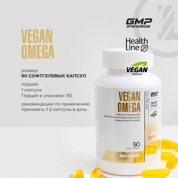 Maxler БАД Vegan Omega 3-6-9 (1480 мг), 90 капсул