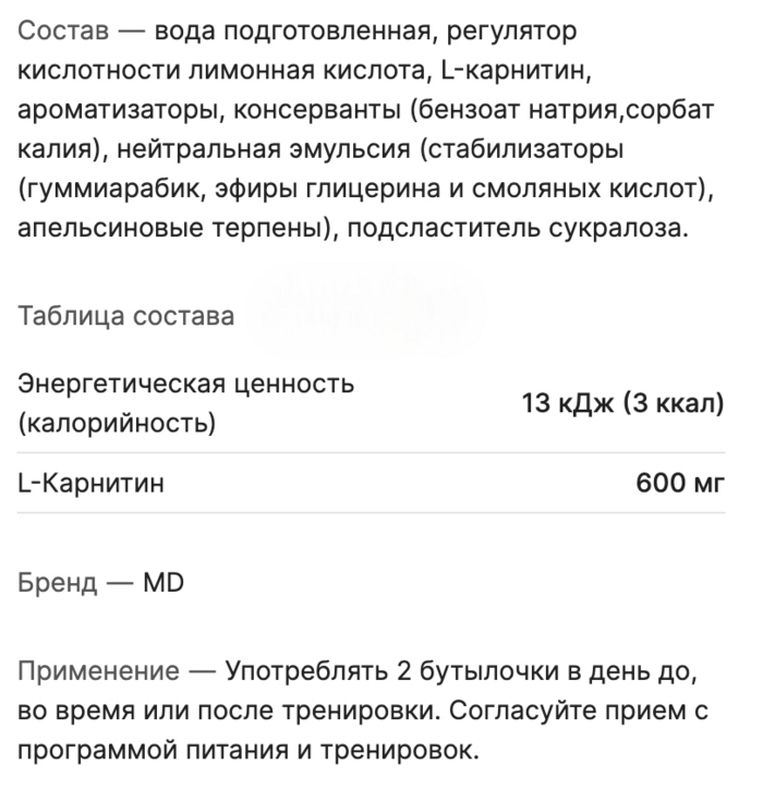 MD Напиток с L-карнитином и ананасом не содержит сахара и искусственных красителей, что делает его идеальным выбором для тех, кто следит за своим здоровьем и фигурой. Удобная упаковка в 500 мл позволяет легко взять напиток с собой на тренировку или прогулку.