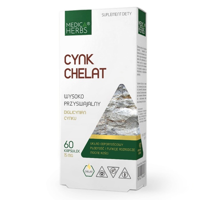 Medica Herbs Цинк Хелат 15мг — это высококачественная добавка, предназначенная для поддержки иммунной системы, костей и мышц. В каждой упаковке содержится 60 капсул, которые обеспечивают организм необходимым количеством цинка в легко усваиваемой форме.