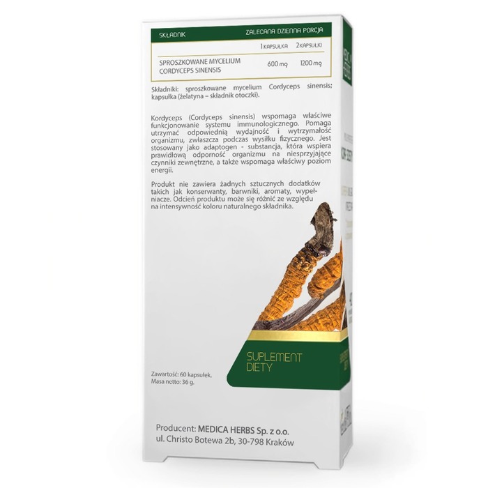 Medica Herbs Кордицепс 600 мг — это мощный природный продукт, который поддерживает вашу энергию и жизненную силу. В каждой упаковке содержится 60 капсул, которые помогут вам заботиться о здоровье почек и печени.