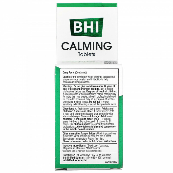 ПредупрежденияНе предназначено для детей младше 12 лет. Перед применением во время беременности или кормления грудью следует проконсультироваться с медицинским работником. Хранить в недоступном для детей месте. Если бессонница или нервное напряжение сохраняется более двух недель, следует проконсультироваться с медицинским работником Бессонница может быть признаком серьезного заболевания. Не используйте, если у вас есть чувствительность к средству BHI Calming или любому из его ингредиентов.