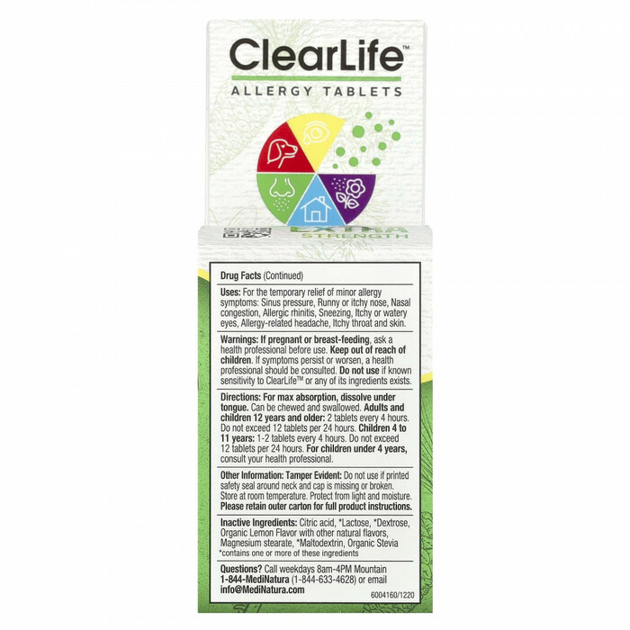Ненатуральные средства от аллергии могут вызывать сонливость (нежелательную в дневное время). Другие вызывают нервное напряжение или тревожность (что нежелательно по ночам). Натуральное средство ClearLife не имеет ни одного из этих побочных эффектов, поэтому подходит для использования как днём, так и ночью.