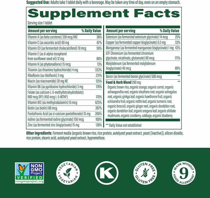 ИнгредиентыФерментированная среда (органический коричневый рис, рисовый протеин, автолизированный экстракт дрожжей, дрожжи [неактивные]), диоксид кремния, стеариновая кислота, рисовый протеин, автолизированный экстракт дрожжей, пищевой крахмал из тапиоки, гипромеллоза.