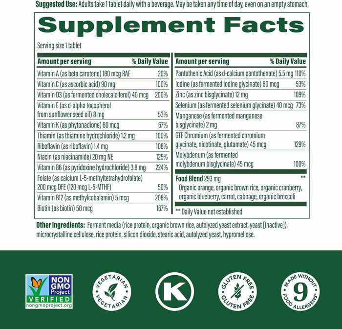 ИнгредиентыМикрокристаллическая целлюлоза, ферментированная среда (рисовый белок, органический коричневый рис, автолизированный экстракт дрожжей, дрожжи [неактивные]), рисовый протеин, диоксид кремния, стеариновая кислота, автолизированные дрожжи, гипромеллоза.