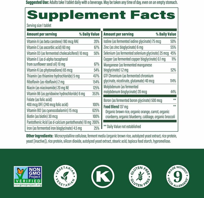 MegaFood One Daily — это базовый мультивитаминный комплекс в удобных таблетках для приема один раз в день, разработанный для удовлетворения потребностей взрослых в питательных веществах.