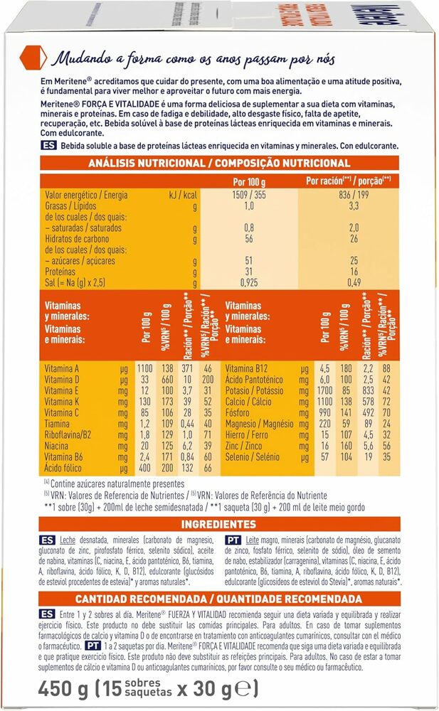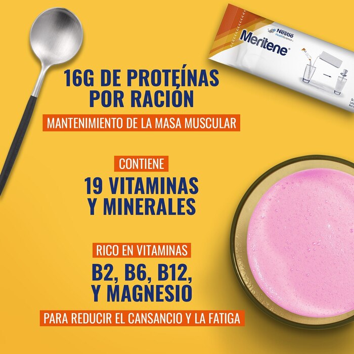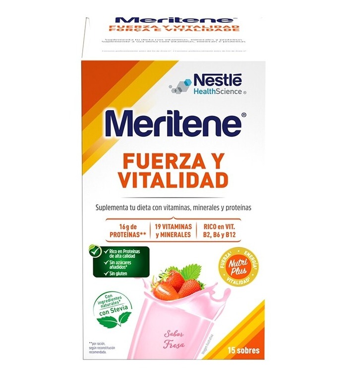 Meritene Active Senior Nutrition Shake со вкусом клубники — это идеальное решение для поддержания здоровья пожилых людей. В каждой упаковке содержится 15 саше с питательным коктейлем, который обеспечивает организм необходимыми витаминами и минералами.