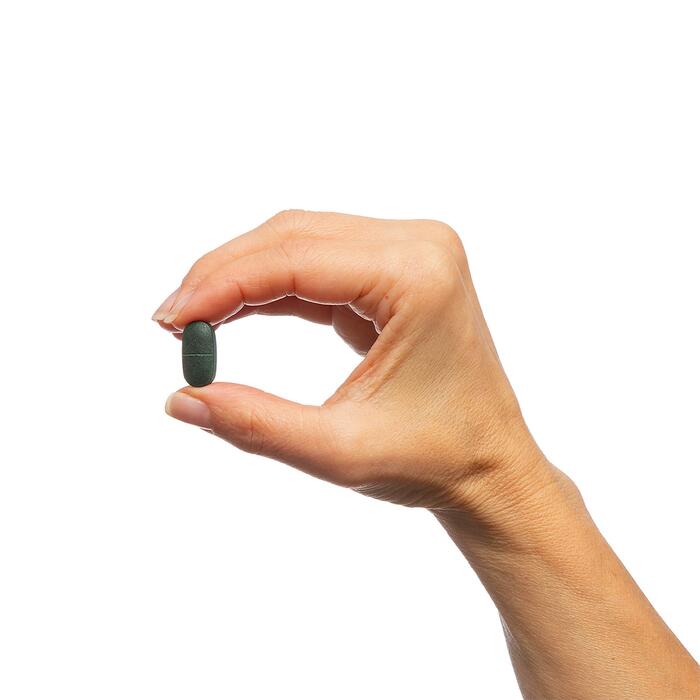 Микрокристаллическая целлюлоза, кроскармеллоза натрия, силикат кальция, стеариновая кислота (растительного происхождения), диоксид кремния, и покрытие [гипромеллоза, среднецепочечные триглицериды, гидроксипропилцеллюлоза, и натрий-медный хлорофиллин (краситель)].