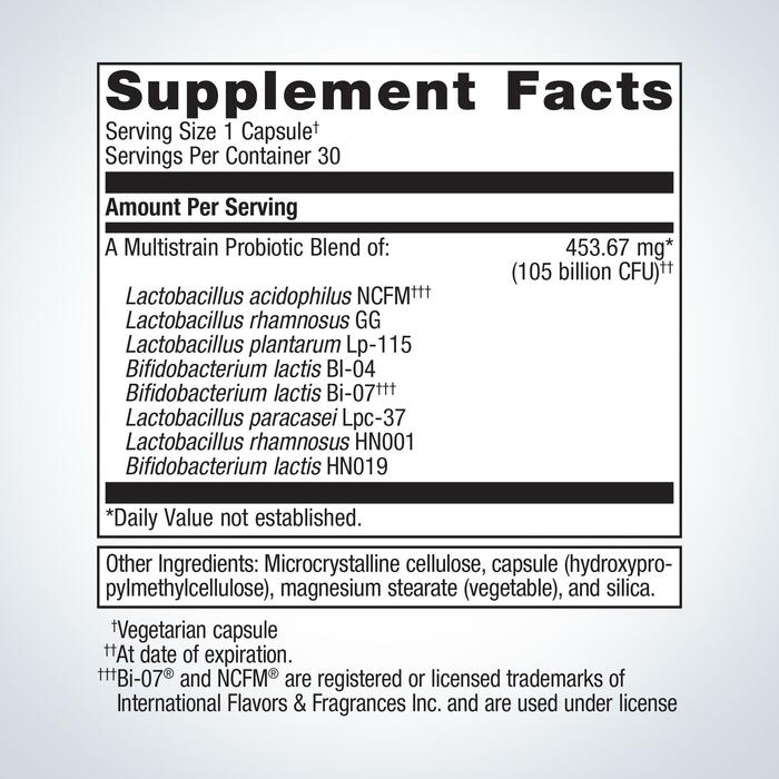UltraFlora® BiomePro - это комплекс из восьми клинически изученных штаммов пробиотиков для поддержания здоровья желудочно-кишечного тракта и иммунитета. Эта многомерная формула содержит 105 миллиардов КОЕ, гарантированных до конца срока годности. Эта упаковка длительного хранения не требует охлаждения.