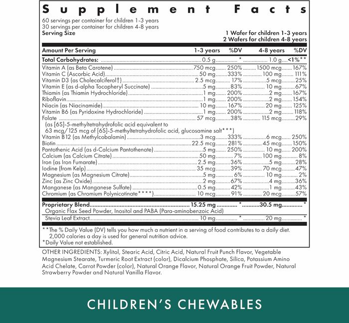 Рекомендации по применению Детям в возрасте 1–3 лет принимать по одной (1) вафле в день во время завтрака. Детям в возрасте 4–8 лет разжевывать две (2) вафли в день во время завтрака. Дозировку можно увеличивать в соответствии с рекомендациями лечащего врача. Для детей от 9 лет доступны мультивитамины Michael's® для детей и подростков.