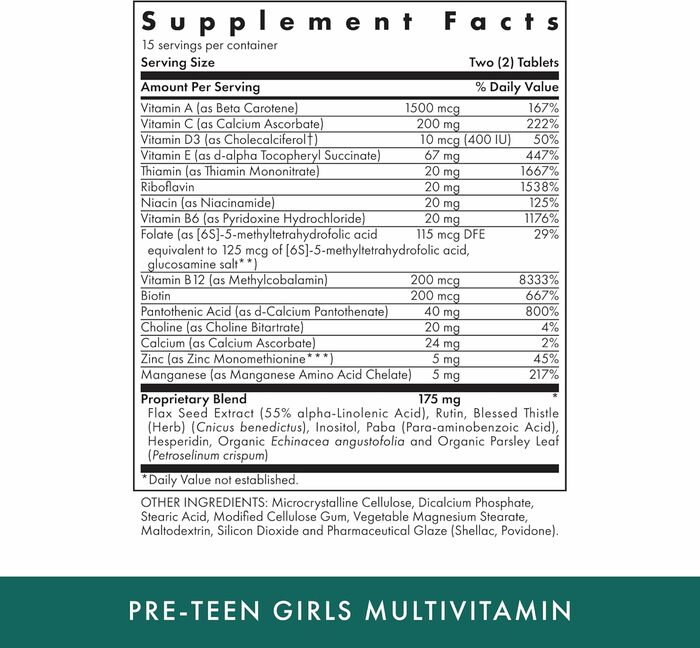 Ежедневная формула питательных веществ и трав для здорового женского организма в возрасте 9–12 лет. Содержит травы, которые традиционно использовались женщинами для поддержания здоровья. Содержит Opti-Zinc® с холином, инозитолом и ниацином.