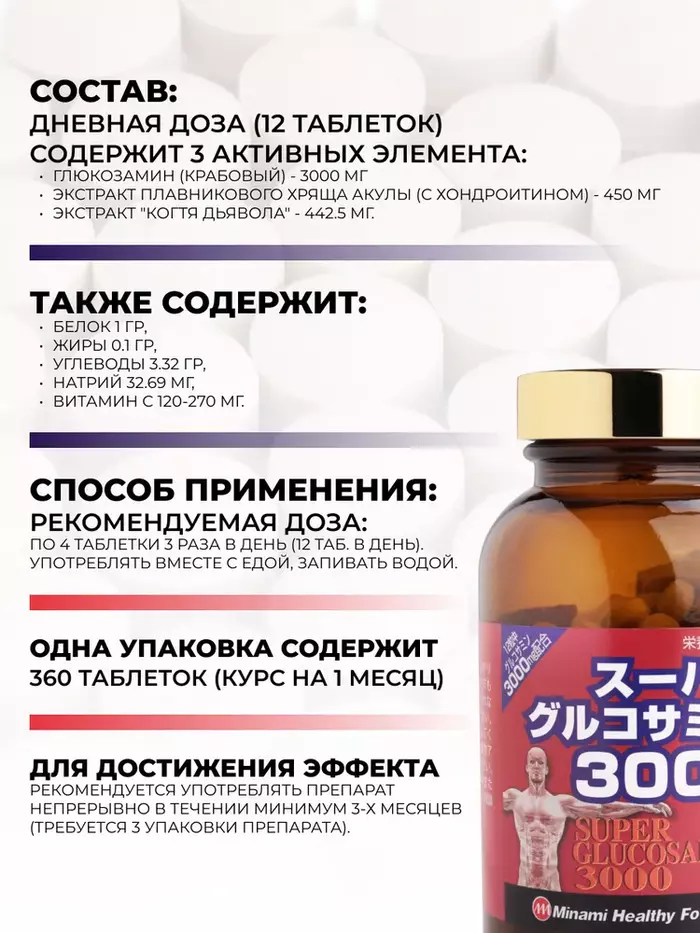 Таблетки Глюкозамина от Minami Healthy Foods имеют оптимальную дозировку и подходят для людей, ведущих активный образ жизни. Рекомендуется принимать их в рамках сбалансированного питания для достижения наилучших результатов.