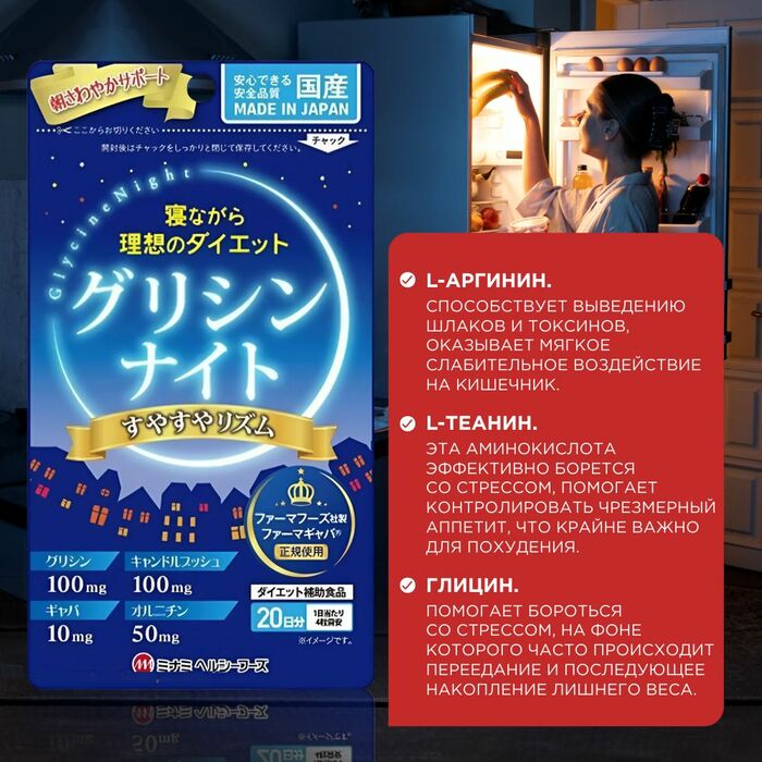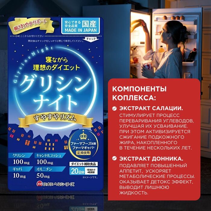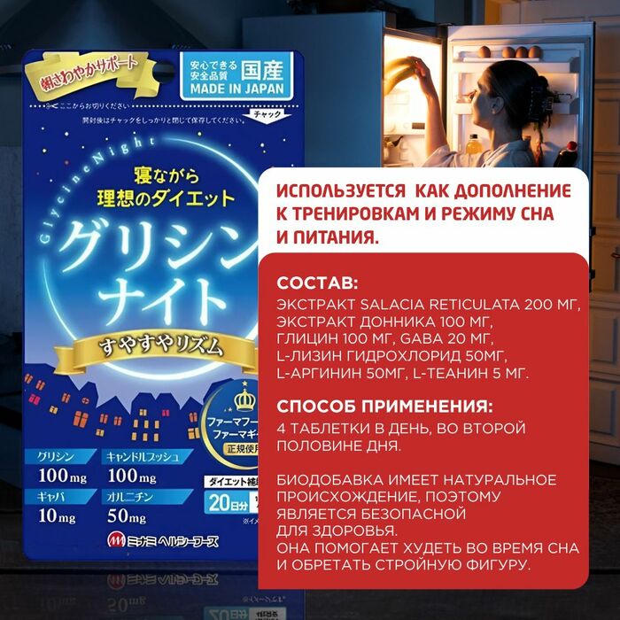 БАД Ночная диета от Minami Healthy Foods — это уникальный продукт, который поможет вам достичь желаемых результатов в похудении во время сна. В каждой упаковке содержится 80 таблеток, которые обеспечивают эффективное воздействие на обмен веществ и способствуют снижению веса.