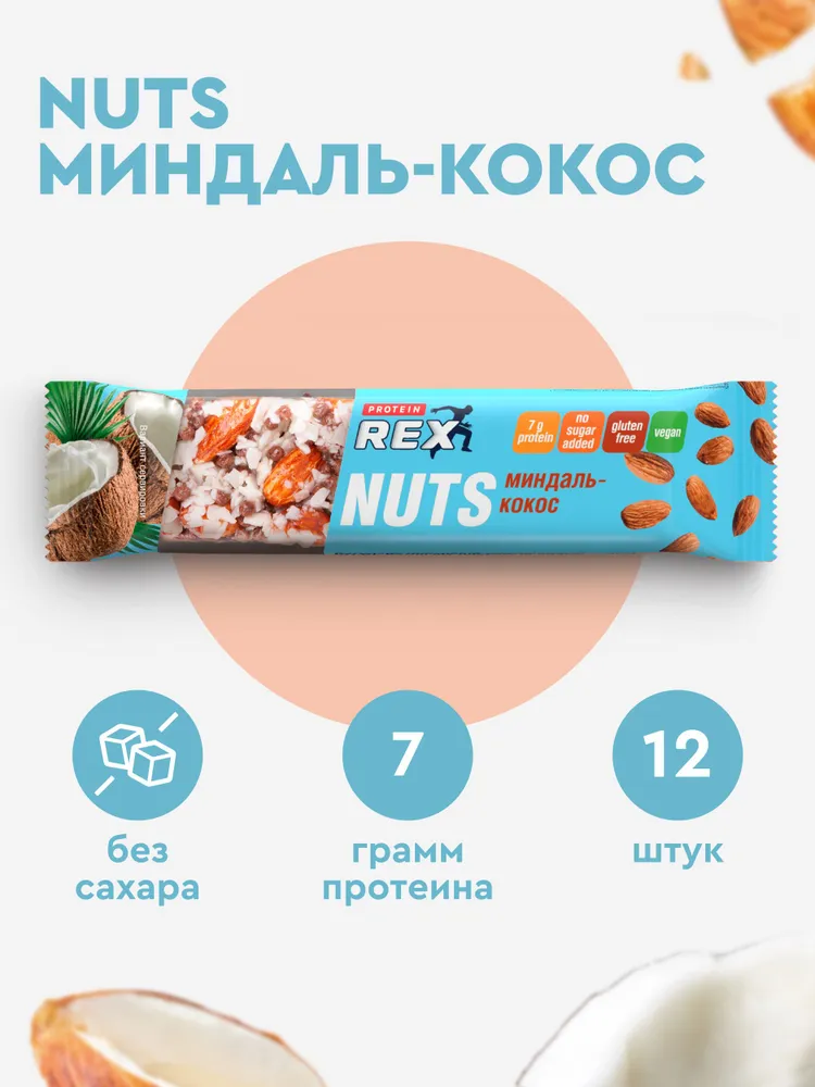 Proteinrex Батончик ореховый протеиновый NUTS Миндаль-Кокос, 40 г