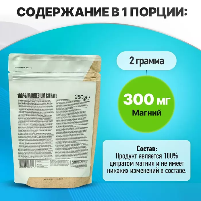 Myprotein Магний 100% Magnesium Citrate (300 мг), 250 г