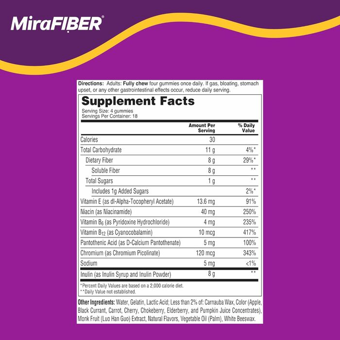 MiraLAX Добавка для пищеварения MiraFiber Клубника, яблоко, виноград, вишня, апельсин и лимон, 72 шт