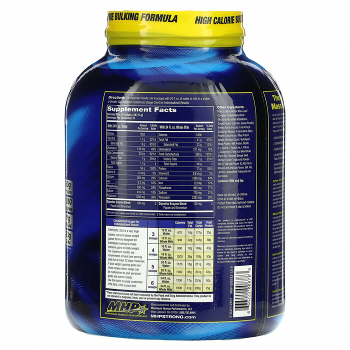 Уже более десяти лет миллионы спортсменов доверяют Up Your Mass®, чтобы помочь им значительно увеличить мышечную массу, силу и ускорить восстановление. Теперь MHP представляет новое поколение технологий для наращивания мышечной массы с Up Your Mass XXXL 1350! Эта научно продвинутая формула для набора веса разработана для полноценного питания и настолько эффективна, что может помочь набрать до 18 фунтов массы всего за 5 недель! Превосходное качество и количество питательных веществ для наращивания мышечной массы в UYM XXXL 1350 делают его идеальным гейнером для всех, кто хочет быстро набрать качественную массу.