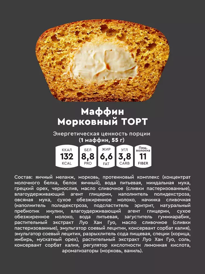 Mr. Djemius Протеиновый маффин Zero Muffin ROCKY Морковный торт, 55 г