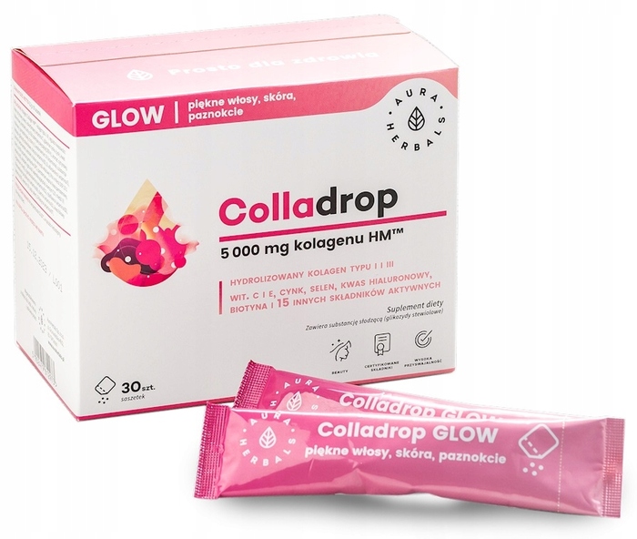 Морской коллаген Colladrop Glow 5000 мг от Aura Herbals — это высококачественный продукт, созданный для поддержания здоровья кожи, волос и ногтей. Каждая порция содержит 5000 мг морского коллагена, который способствует улучшению упругости и эластичности кожи.