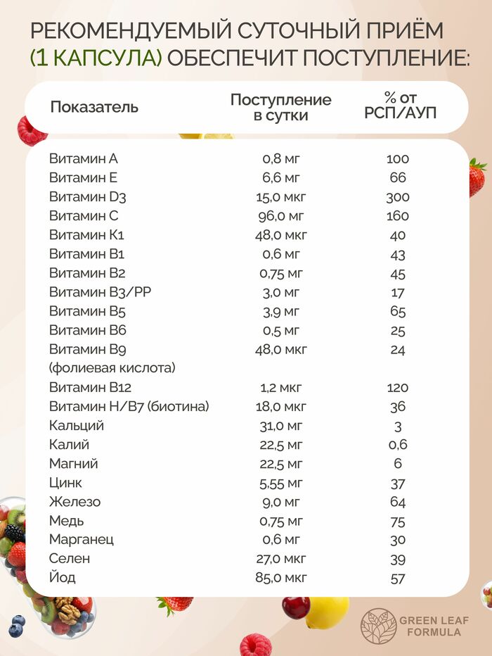 GREEN LEAF FORMULA Мультивитаминный комплекс, 60 капсул