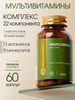 Витаминно-минеральный комплекс для взрослых создан для ежедневной поддержки организма,состоит из 13 витаминов и 9 минералов, необходимых для поддержания здоровья, жизненноготонуса и нормального функционирования основных систем организма.Комплекс витаминов и минералов помогает восполнить недостаток микронутриентов, поддерживает энергетический обмен, иммунитет, состояние кожи, волос и ногтей, а также способствует полноценной работе нервной и сердечно-сосудистой систем.Дополнительный источник витаминов (А, С, Е, D3 (600МЕ в капсуле), К1, В1, В2, В3/РР, В5, В6,биотин, фолиевая кислота, В12) и минеральных веществ (кальция, калия, магния, цинка, железа,меди, марганца, селена, йода).Показания к применению: укрепление иммунитета,профилактика заболеваний,дополнительный источник витаминов и минералов,несбалансированное, нерегулярное питание,умственные и физические нагрузки,снижение работоспособности,повышенная утомляемость,ослабление защитных функций организма,поддержание здорового состояния кожи, волос и ногтей,поддержание энергетического обмена и общего тонуса организма.БАД  рекомендуются как  ежедневная поддержка организма при:активном образе жизни,больших нагрузках,стрессах,напряженном графике,высокой утомляемости.Противопоказания: индивидуальная непереносимость компонентов продукта, беременность,кормление грудью, состояния при который противопоказаны препараты йода. Перед применениемнеобходимо проконсультироваться с врачом.