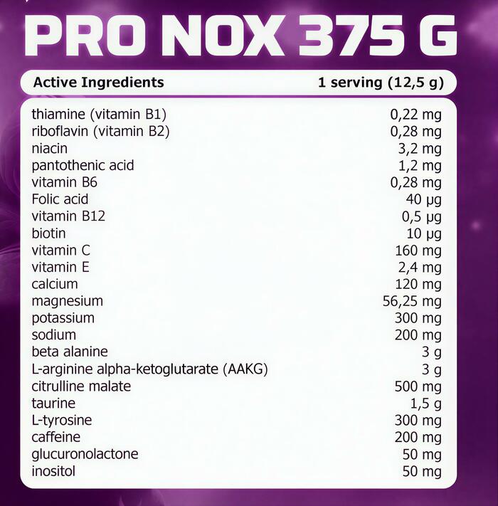 - Увеличение выносливости: Pro Nox помогает увеличить выносливость, улучшить интенсивность тренировок и ускорить восстановление после физических нагрузок.