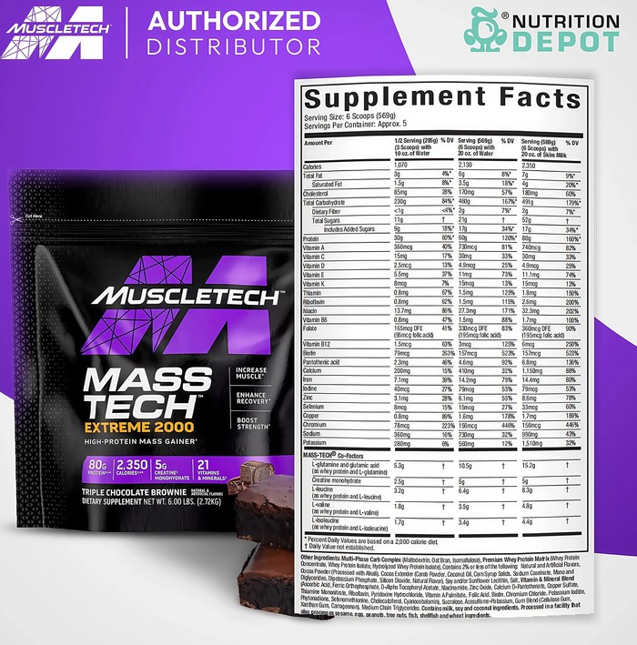 Будьте готовы к невероятным результатам с этим передовым мощным средством для набора массы. В каждой порции Mass-Tech® Extreme 2000 (при смешивании с 600 мл [20 унциями] обезжиренного молока) содержится 80 г белка, более 400 г углеводов и более 2000 калорий, в том числе 8,3 г L-лейцина, 10 г креатина, а также 21 витамин и минерал. В Mass-Tech® Extreme есть все необходимое, чтобы нарастить мышечную массу, увеличить объем и достичь желаемого результата.