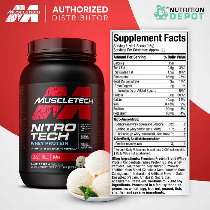 На протяжении многих лет бренд MuscleTech® сотрудничает с ведущими мировыми производителями ароматизаторов, чтобы обеспечить восхитительный вкус каждой мерной ложки Nitro-Tech®. И сейчас, когда ваша цель находится так близко, что вы можете почувствовать ее вкус, попробуйте наш продукт. Вам обязательно понравится.