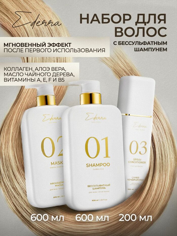Ederra Ultimate Бессульфатный набор для нормальных и поврежденных волос 3 в 1, 600 мл