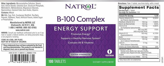 Natrol Комплекс Витаминов группы B, 100 табл
