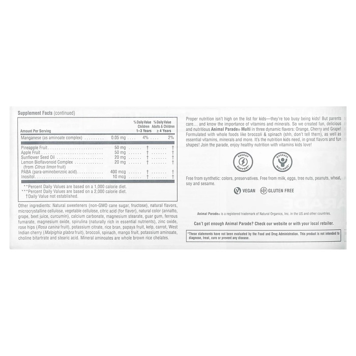 Natures Plus Мультивитамины для детей, Вишня-Виноград-Апельсин — это жевательные таблетки с разнообразными вкусами, разработанные специально для поддержания здоровья и роста детей. Сбалансированный состав витаминов и минералов помогает укрепить иммунную систему, поддерживает нормальный рост и развитие, а также способствует улучшению концентрации и энергии.