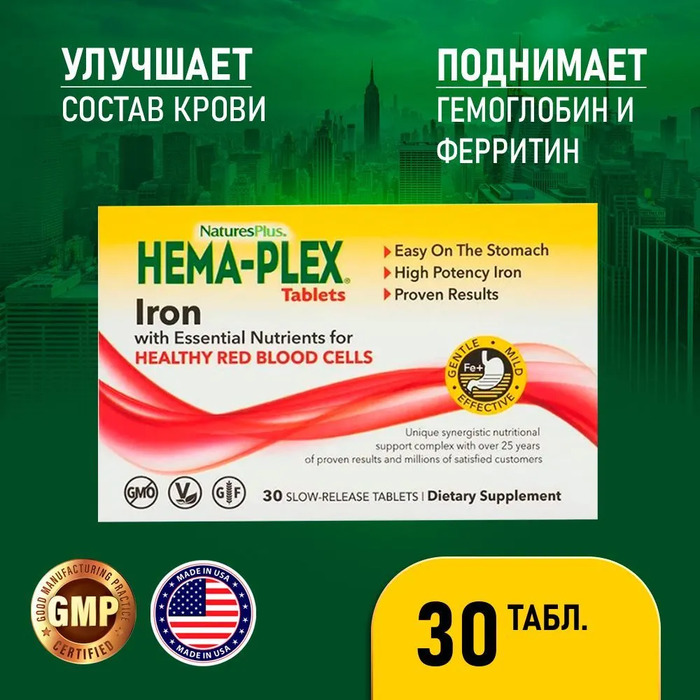 Nature's Plus Железо Plus Hema-Plex — это пищевая добавка, разработанная для поддержания здорового уровня железа и улучшения общего самочувствия. В состав каждой таблетки входит смесь необходимых витаминов и минералов, которые помогают в образовании красных кровяных телец и усиливают выработку энергии.