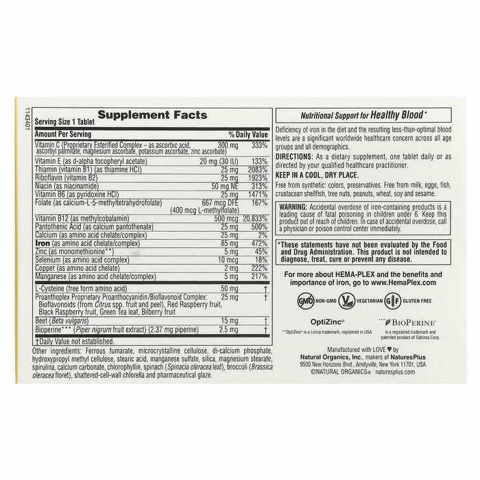NaturesPlus Железо Plus Hema-Plex, 30 табл