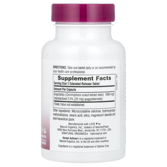 NaturesPlus® Herbal Actives Gugulipid® обеспечивает стандартизированный уровень основного активного ингредиента (гуггулстеронов) наряду с активными растительными компонентами. Наш специализированный препарат обеспечивает синергетические преимущества этого аюрведического экстракта как ключевого компонента аюрведы (древнеиндийской системы здоровья и благополучия).