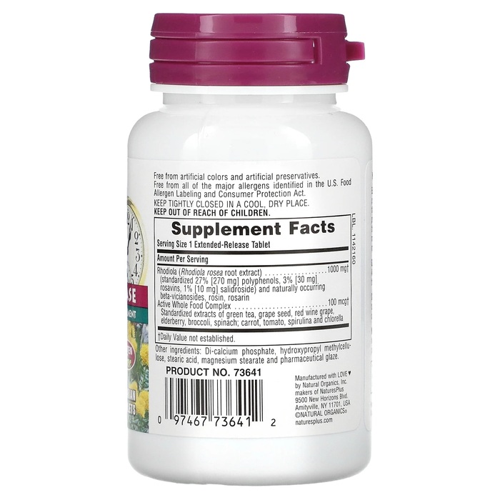 Родиола с замедленным высвобождением (1000 мг) от NaturesPlus — это высококачественная добавка, которая поддерживает ваше здоровье и активность. В каждой упаковке содержится 30 вегетарианских таблеток, обеспечивающих длительное действие.