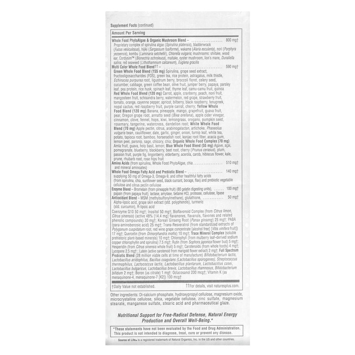 NaturesPlus Мультивитаминная добавка Source of Life Gold, 90 табл