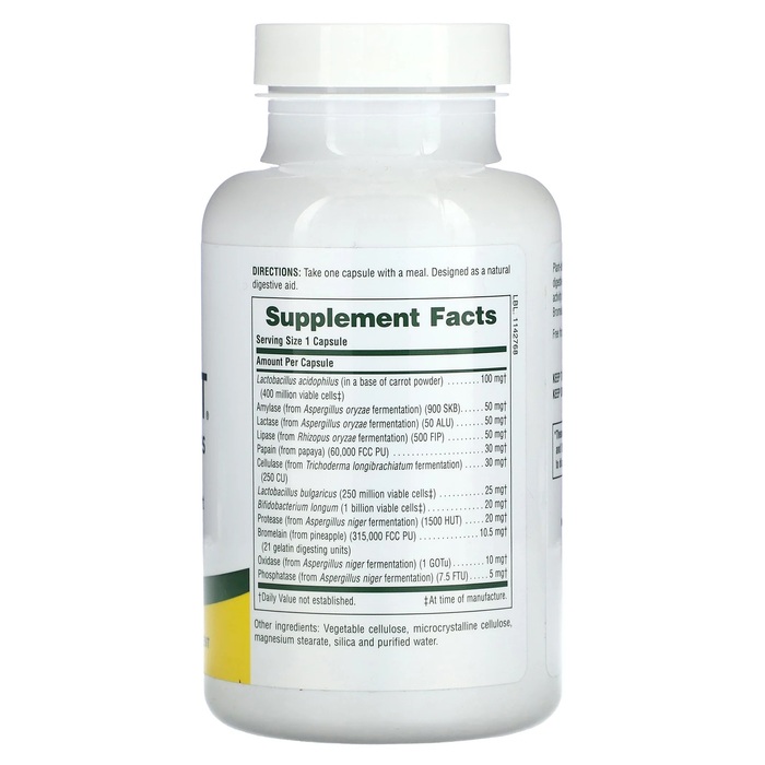 Ферменты растительного происхождения и 3 пробиотика, способствующие здоровому пищеварению. Содержит 9 мощных ферментов для максимальной активности: Амилаза, лактаза, липаза, папаин, целлюлаза, протеаза, бромелаин, оксидаза и фосфатаза.