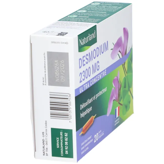 Naturland Desmodium 2300mg питьевые ампулы — это высококачественный продукт, предназначенный для поддержки здоровья печени. В каждой упаковке содержится 20 ампул по 10 мл, что обеспечивает удобство в использовании и дозировке.