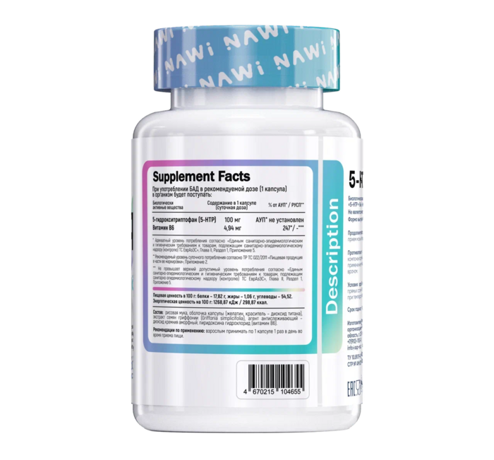 5-HTP + Витамин B6 от NAWI — это высококачественная добавка, которая поддерживает нормальное функционирование организма. В каждой упаковке содержится 60 капсул, которые обеспечивают необходимую дозу 5-гидрокситриптофана и витамина B6.