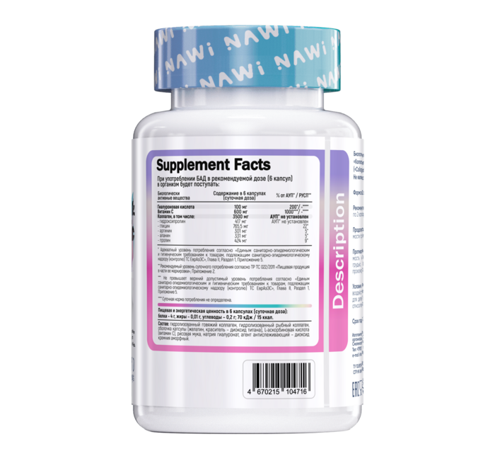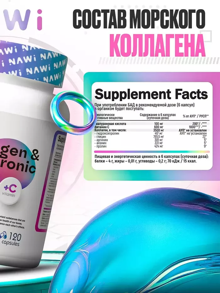 Коллаген морской с Витамином С и гиалуроновой кислотой от бренда NAWI — это высококачественная добавка, предназначенная для поддержания здоровья кожи, суставов и общего состояния организма. В каждой упаковке содержится 120 капсул, которые обеспечивают ваш организм необходимыми компонентами для поддержания молодости и красоты.