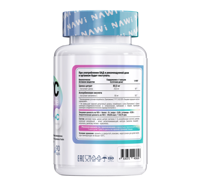 Цинк + Витамин C от бренда NAWI — это высококачественная добавка, которая поддерживает здоровье и иммунитет. В каждой упаковке содержится 90 капсул, обеспечивающих ваш организм необходимыми микроэлементами.