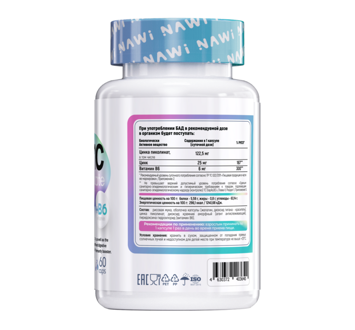NAWI Цинк пиколинат с Витамином B6, 60 капсул