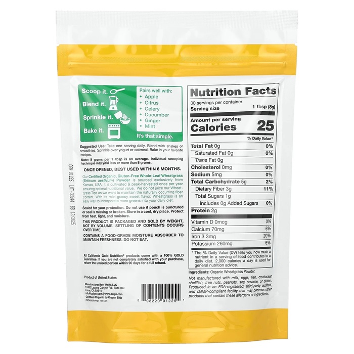 California Gold Nutrition Органический порошок из ростков пшеницы, 240 г