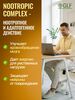 Нейровитамины для мозга NOOTROPIC COMPLEX созданы для поддержки умственной активности, концентрации внимания и памяти, улучшения мозгового кровообращения, повышения энергии, улучшения настроения, защиты нейронов от повреждения.Компоненты в составе Активатора мозга - экстракты гинкго билоба, плодов лимонника (схизандрин), зеленого кофе (кофеин) - обладают ноотропным и адаптогенным действием. Экстракты получены методом экстракции сверхкритическим СО2 для сохранения максимальной концентрации биологически активных веществ.Показания к применению: Снижение когнитивных функций: концентрации внимания и памяти.Быстрая утомляемость.Ухудшение работы мозга, энцефалопатия.Снижение продуктивности.Повышенные физические и умственные нагрузки.Стрессовые ситуации.Перепады настроения.Снижение работоспособности. Активные компоненты:Экстракт листьев гинкго билоба - улучшает мозговое кровообращение, повышает концентрацию внимания и улучшает память, обладает антиоксидантными свойствами.Экстракт плодов лимонника (схизандрин) - повышает стрессоустойчивость, стимулирует умственную и физическую активность, поддерживает ясность мышления, улучшает настроение.Экстракт зеленого кофе (кофеин) - мягко тонизирует, повышает бодрость и работоспособность, содержит антиоксиданты для защиты клеток.Флаваноиды - усиливают когнитивные функции,  функцию нейронов и стимулируют нейрогенезВитамин E - мощный антиоксидант, защищает нейроны, улучшает микроциркуляцию и снижает утомляемость.Противопоказания: Индивидуальная непереносимость компонентов БАД, беременность, кормление грудью, повышенная нервная возбудимость, бессонница, повышенное артериальное давление, нарушение сердечной деятельности, выраженный атеросклероз.