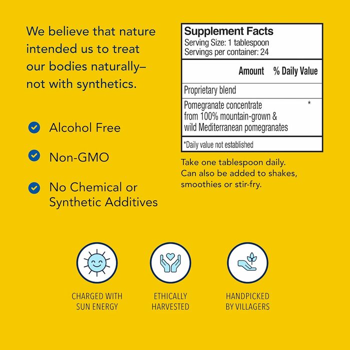 PomaMAX — единственный доступный 100% натуральный концентрат средиземноморского граната, выращенного в горах. Все остальные источники — гранаты, выращенные коммерческим путем. Это оригинальный гранатовый концентрат, изготовленный теми же традиционными методами, которые использовались веками. Обратите внимание на исключительный, натуральный терпкий вкус и аромат этого гранатового концентрата. Гранат — один из основных источников эффективных флавоноидов, пуникалагина и эллаговой кислоты. Он содержит больше антиоксидантов, чем практически все остальные фрукты и овощи.