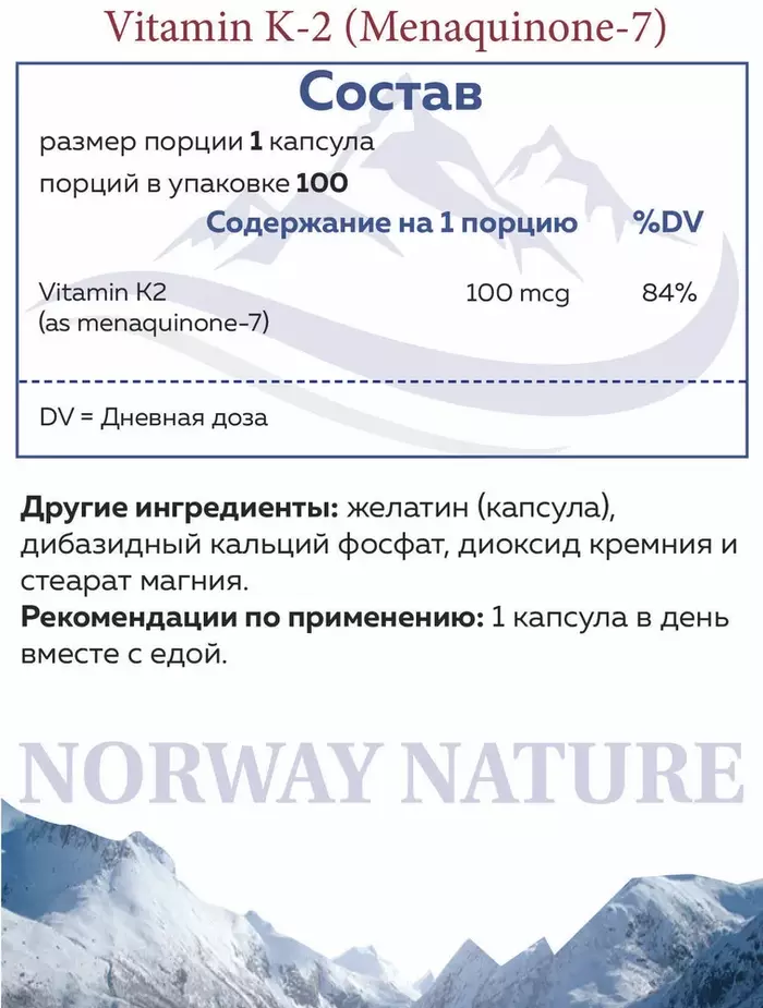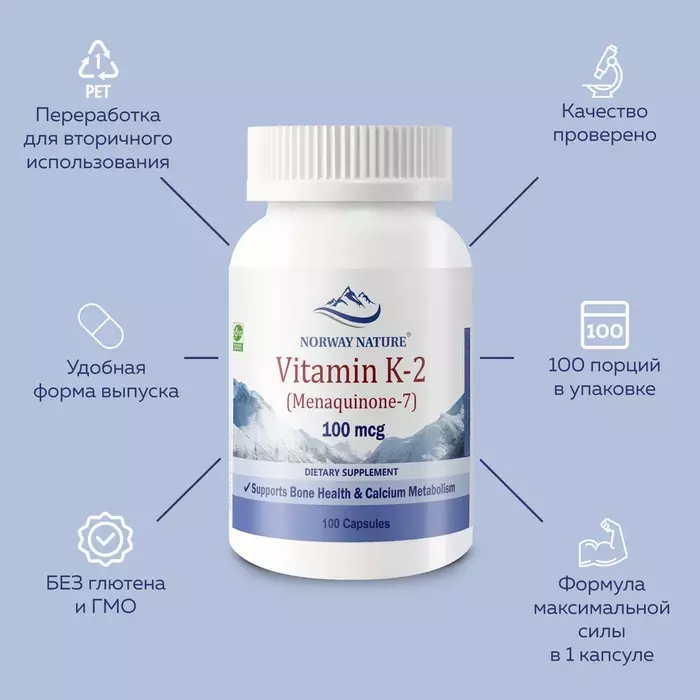 Витамин К2 (100 мкг) от бренда Norway Nature — это важный элемент для поддержания здоровья и нормального функционирования организма. В каждой упаковке содержится 100 таблеток, которые помогут вам обеспечить необходимую дозу витамина К2.