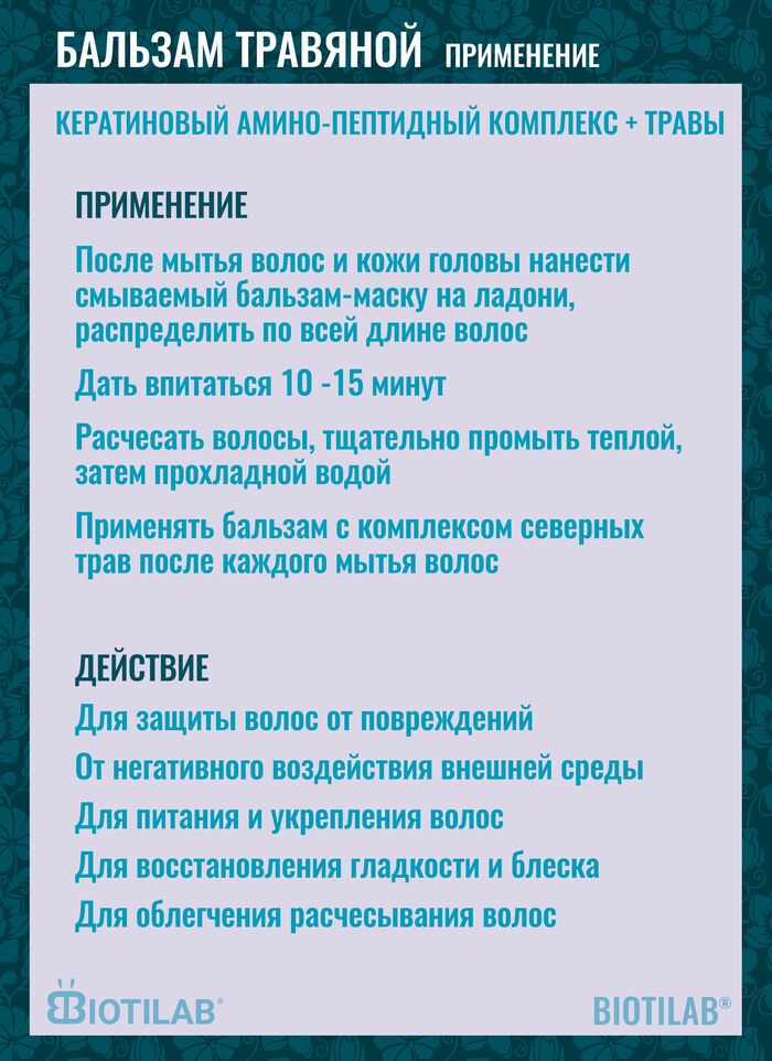 Бальзам Травяной Nothern beauty создан для женского ежедневного ухода и профессионального применения. Подходит для нормальных и жирных волос: увлажняет, смягчает и поддерживает восстановление, помогая волосам выглядеть здоровыми.