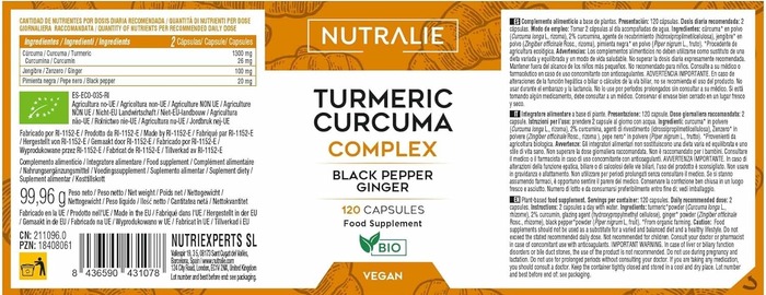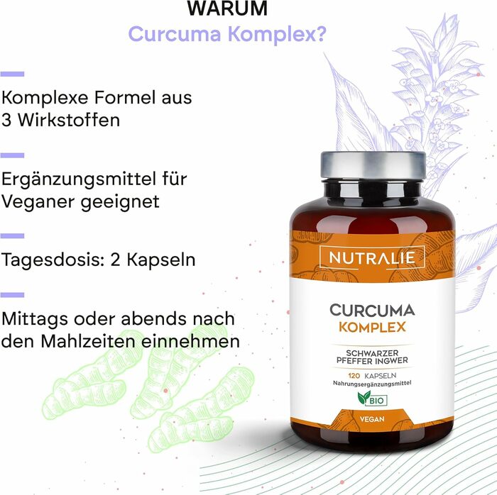 Nutralie Органический куркумин с черным перцем и имбирем — это высококачественная добавка, содержащая 120 веганских капсул, которая поддерживает здоровье и активность организма. Этот продукт сочетает в себе мощные свойства куркумина, черного перца и имбиря для достижения максимального эффекта.