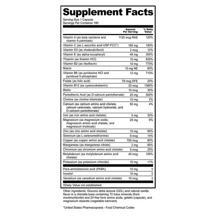 Формула мультивитаминов и минералов NutriBiotic® содержит сбалансированную смесь качественных питательных веществ, которые были тщательно отобраны с учетом их высокой биодоступности и усвояемости и включают: