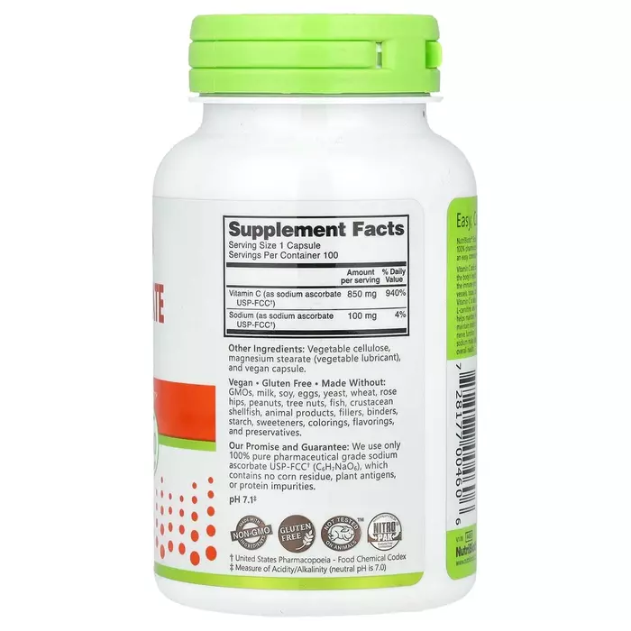 NutriBiotic Sodium Ascorbate (850 мг), 100 капс